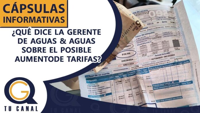 Capsulas ¿QUÉ DICE LA GERENTE DE AGUAS & AGUAS SOBRE EL POSIBLE AUMENTO DE TARIFAS? Por Luis Garcia Quiroga - 0 6 FacebookTwitterPinterestWhatsApp La ingeniera Mónica Saldarriaga, dice que con el aumento del salario mínimo y otros factores económicos, el sector servicios públicos siente la presión pero está a la expectativa