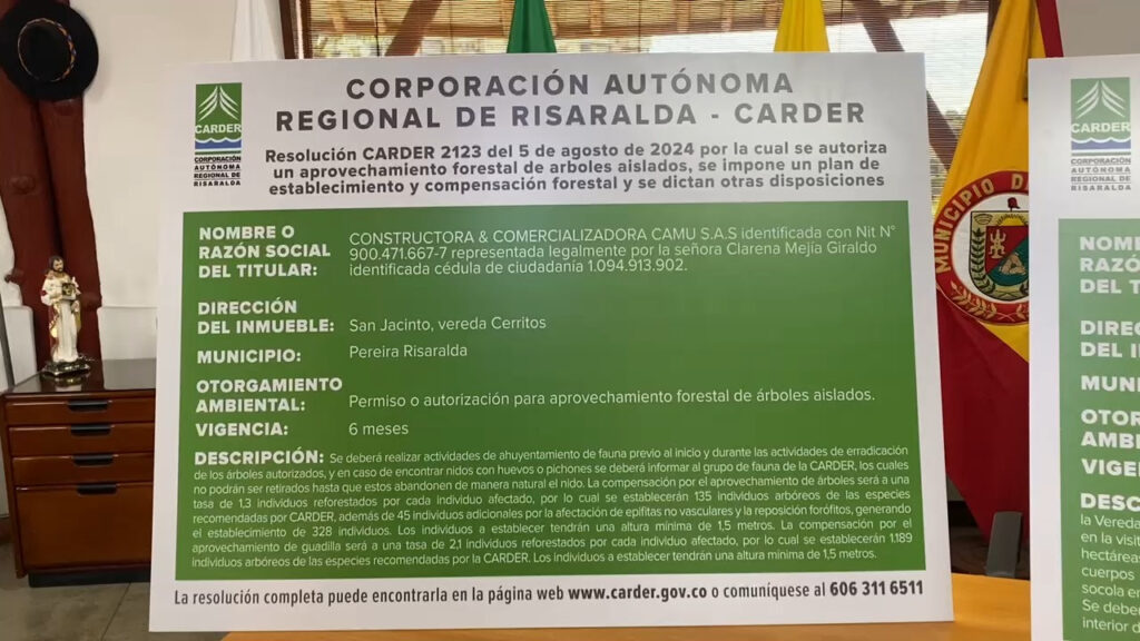 Pereira, 18 de febrero de 2026. Ante el gran desarrollo urbanístico que actualmente vive el departamento de Risaralda, y tras la gran cantidad de suspensiones que ha realizado la autoridad ambiental en los últimos meses, la Corporación Autónoma Regional de Risaralda quiere reiterar a los desarrolladores urbanísticos la importancia de tramitar cada uno de los permisos ambientales, así como la colocación de la valla verde.