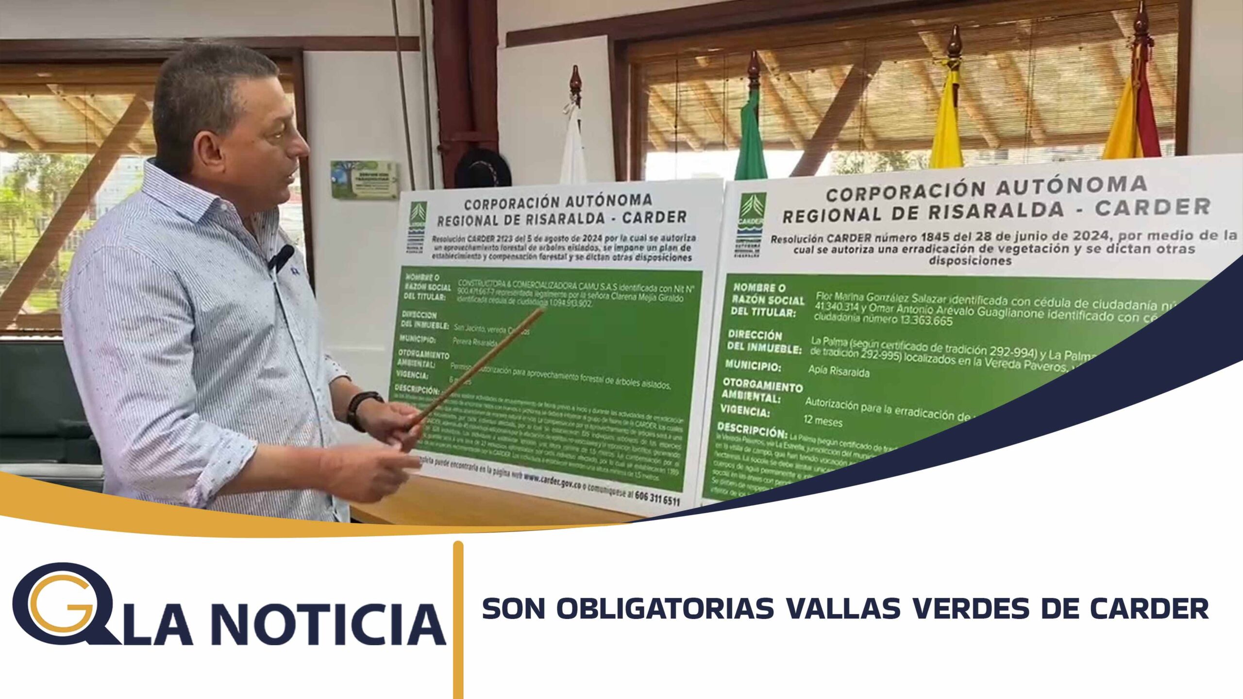 Al respecto, el director de la CARDER expresó que: “La Corporación viene exigiendo reiteradamente el uso y la colocación no sólo de la valla verde, sino de la obtención de todos los permisos. Tenemos que hacer todas estas exigencias porque realmente hoy vemos una acción desmedida aleve contra los recursos naturales, y todos los días las autoridades tenemos que trabajar en mejor coordinación para cuidar el medio ambiente. Pedirle el apoyo a la comunidad, y como reza nuestro dicho, es con la gente que cuidamos el ambiente”.